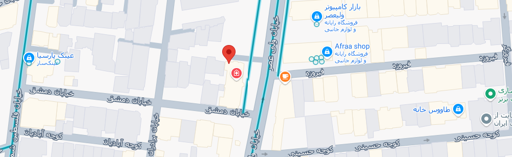 | بالاتر از میدان ولیعصر ، بعد از تقاطع زرتشت ، کوچه نوربخش ، پلاک ۲۷ | 02188854207 |