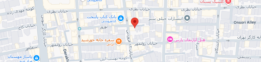 خیابان ولیعصر، بین زرتشت و فاطمی، نبش کوچه پرستو، ساختمان پرستو، طبقه 6، واحد 605 ساعت کاری: 9 تا 17 |